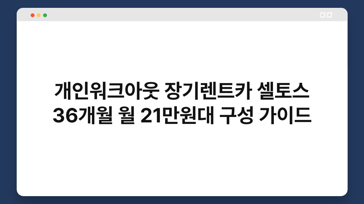 차량 구매를 고민하고 계신가요? 특히 셀토스와 같은 인기 모델을 장기렌트로 이용하는 방법에 대해 알아보면 많은 도움이 될 것입니다. 오늘은 개인워크아웃을 통해 셀토스를 36개월 동안 월 21만원대에 이용하는 방법을 소개합니다. 황제오토플랜과 함께라면 더욱 유리한 조건으로 차량을 이용할 수 있습니다. 이 글을 통해 장기렌트의 장점과 황제오토플랜의 매력을 확인해보세요.