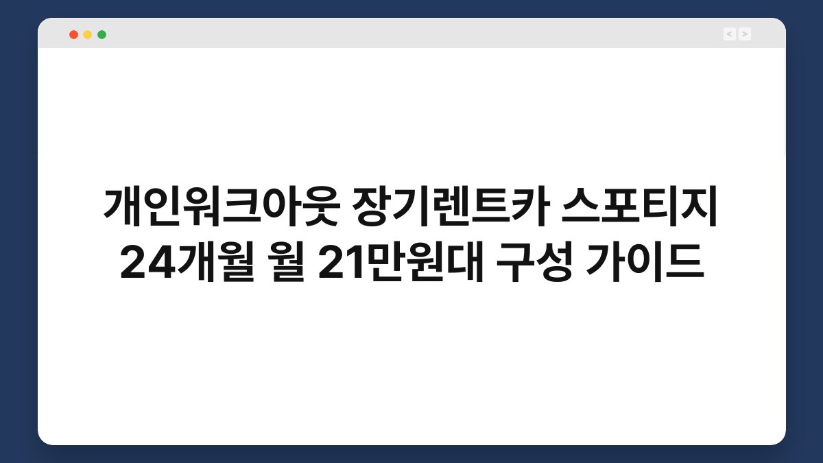 차량을 소유하는 것이 부담스럽게 느껴지시나요? 특히 경제적인 이유로 차량 구매를 망설이는 분들이 많습니다. 그렇다면 개인워크아웃을 통해 장기렌트카를 고려해보는 것은 어떨까요? 오늘은 스포티지를 24개월 동안 월 21만원대에 이용할 수 있는 방법에 대해 알아보겠습니다. 황제오토플랜과 함께라면 더욱 유리한 조건으로 차량을 이용할 수 있습니다. 이 글을 통해 장기렌트의 장점과 관련된 정보를 자세히 살펴보겠습니다.