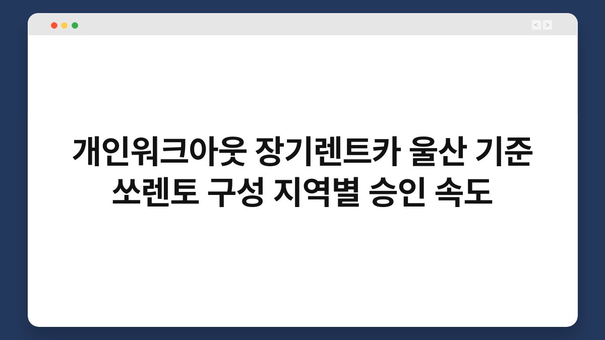 개인워크아웃은 경제적으로 어려운 상황에서 차량을 이용할 수 있도록 돕는 서비스입니다. 차량 구매를 고민하는 분들에게는 부담을 덜어주는 좋은 방법이 될 수 있습니다. 특히 울산에서 쏘렌토와 같은 인기 모델을 장기렌트로 이용하면, 초기 비용 부담 없이 차량을 소유할 수 있습니다.