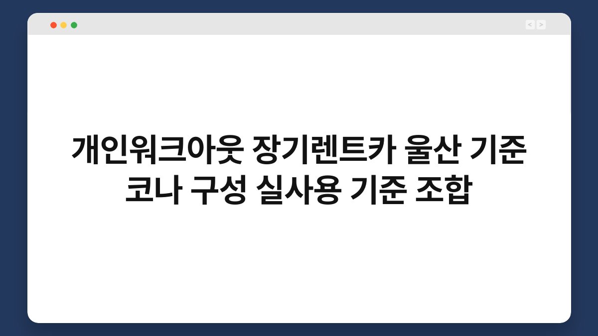 운전의 자유를 느끼고 싶지만, 차량 구매는 부담스럽죠? 장기렌트카는 이러한 고민을 해결해 줄 수 있는 좋은 대안입니다. 특히 울산 지역에서 코나와 같은 인기 모델을 개인워크아웃 방식으로 이용하면 실사용 기준에 맞춰 유연하게 차량을 조합할 수 있습니다. 황제오토플랜은 이러한 장기렌트의 최적화된 솔루션을 제공하여, 여러분의 이동을 더욱 편리하게 만들어 드립니다. 이 글에서는 개인워크아웃과 장기렌트카의 장점, 울산에서의 코나 구성 방법 등을 자세히 다뤄보겠습니다.