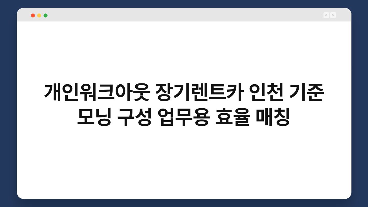 개인워크아웃은 재정적 어려움을 겪고 있는 개인이 부채를 조정하거나 상환 계획을 세우는 과정을 의미합니다. 이 과정에서 차량의 필요성이 더욱 부각되는데요. 특히 인천 지역에서 업무를 수행하기 위해선 이동 수단이 필수적입니다.