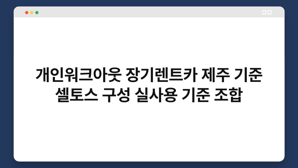 제주에서 장기렌트카를 이용할 계획이신가요? 특히 셀토스와 같은 인기 모델을 고려하고 있다면, 개인워크아웃을 통해 더욱 유리한 조건으로 차량을 이용할 수 있는 방법이 있습니다. 이 글에서는 제주 기준의 셀토스 장기렌트카 선택 시 실사용 기준 조합에 대해 알아보겠습니다. 황제오토플랜을 통해 신뢰할 수 있는 정보를 제공하니, 끝까지 함께 해주세요.