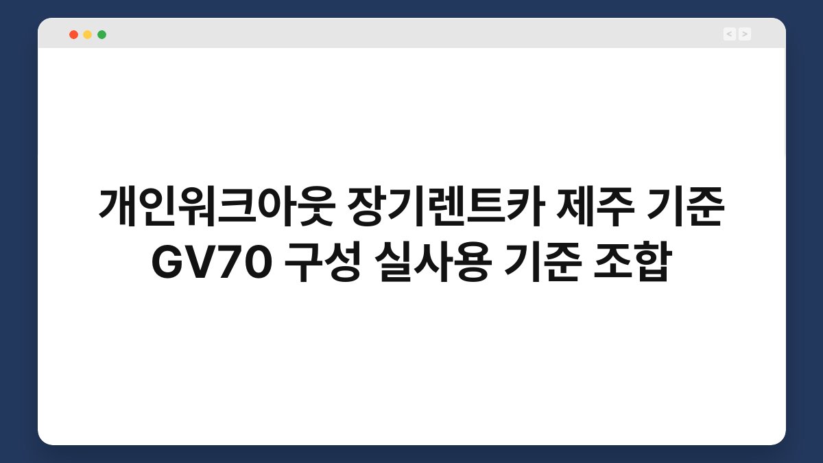 제주에서 GV70을 장기렌트로 이용하고 싶으신가요? 개인워크아웃을 통해 저신용자도 부담 없이 차량을 소유하는 방법이 있습니다. 이번 글에서는 GV70의 구성과 실사용 기준을 바탕으로 제주에서의 최적의 장기렌트카 조합을 소개하겠습니다. 황제오토플랜과 함께라면 더욱 쉽게 원하는 차량을 이용할 수 있습니다. 계속 읽어보시면 장기렌트에 대한 유용한 정보가 가득 담겨 있습니다.