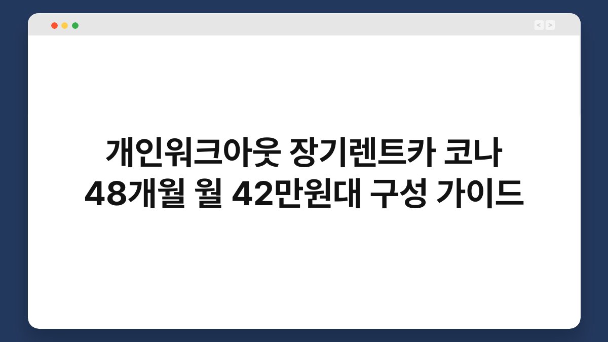 자동차를 소유하는 것은 많은 이들에게 큰 꿈입니다. 하지만 차량 구매에 드는 비용과 유지 관리의 부담은 생각보다 무겁죠. 그런 고민을 덜어줄 수 있는 방법이 바로 개인워크아웃과 장기렌트카입니다. 특히 코나와 같은 인기 모델을 48개월 동안 월 42만원대에 이용할 수 있는 기회는 놓치기 아쉬운 선택입니다. 황제오토플랜의 도움을 받아 이 매력적인 옵션을 알아보세요.