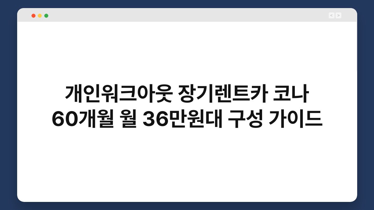 차량 구매나 이용 방식에 대해 고민하고 계신가요? 특히 개인워크아웃이나 장기렌트카에 대한 정보가 필요하다면, 오늘의 내용이 도움이 될 것입니다. 이번 글에서는 코나 모델을 기준으로 60개월 동안 월 36만원대의 구성으로 장기렌트카를 이용하는 방법을 소개하겠습니다. 황제오토플랜과 함께라면 더욱 유리한 조건으로 차량을 이용할 수 있습니다. 함께 알아보시죠!