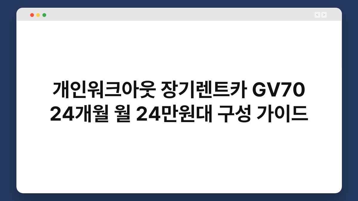 자동차를 소유하는 것은 많은 사람들에게 꿈이지만, 그 꿈을 현실로 만드는 과정은 쉽지 않죠. 특히, 차량 구매의 부담을 덜어주는 장기렌트카는 요즘 많은 사람들에게 인기를 끌고 있습니다. 오늘은 GV70 모델을 중심으로 24개월 동안 월 24만원대에 이용할 수 있는 개인워크아웃 장기렌트카에 대한 정보를 자세히 알아보겠습니다. 황제오토플랜과 함께라면 더욱 편리하고 신뢰할 수 있는 선택이 될 것입니다.