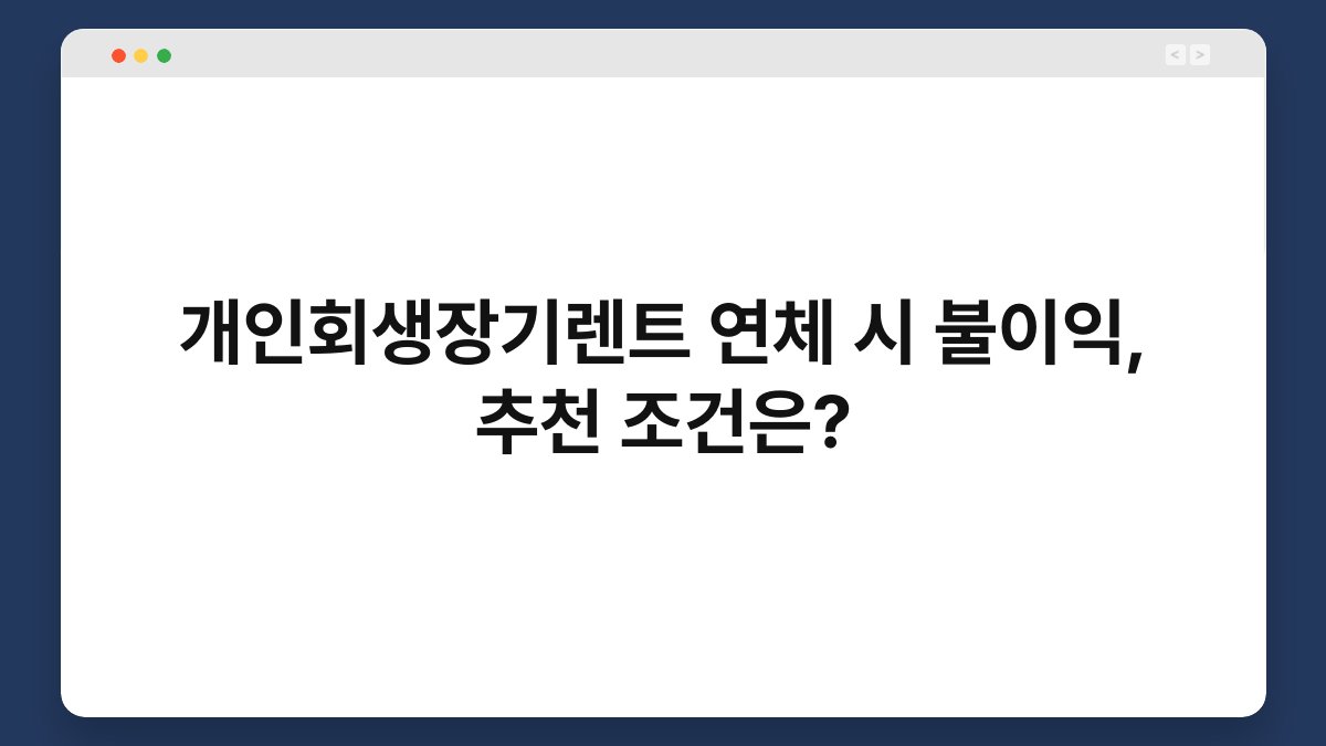 자동차를 소유하고 싶지만, 경제적인 이유로 고민하고 계신가요? 개인회생이나 장기렌트와 같은 방법을 통해 해결할 수 있습니다. 하지만 연체가 발생하면 어떤 불이익이 있는지, 그리고 추천 조건은 무엇인지 궁금하실 겁니다. 이번 글에서는 개인회생 장기렌트 연체 시 불이익과 적합한 조건에 대해 자세히 알아보겠습니다. 황제오토플랜과 함께 안전하고 편리한 차량 이용 방법을 찾아보세요.