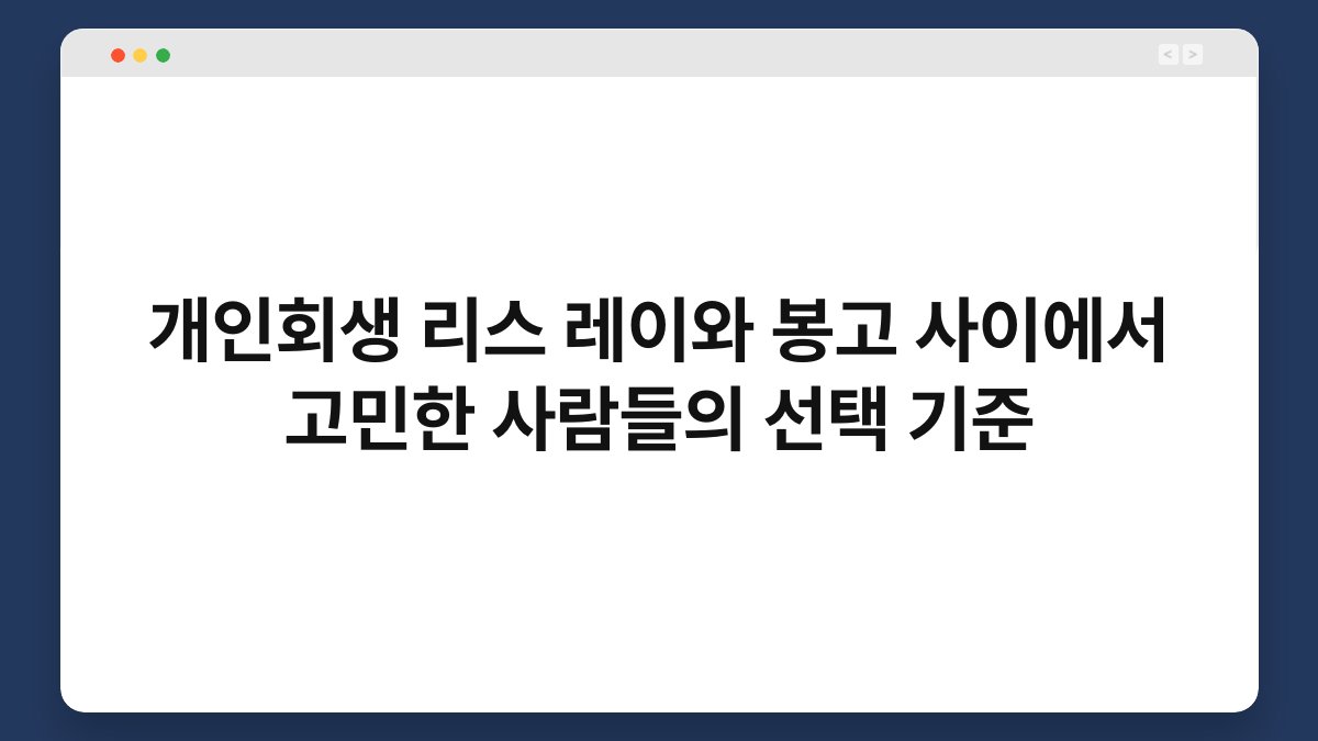 차량 구매나 리스, 혹은 개인회생을 고민하는 분들이 많습니다. 특히 리스와 봉고 사이에서 선택하는 과정은 많은 고민을 동반하죠. 이 글에서는 개인회생을 고려하는 분들이 리스와 봉고를 선택할 때 어떤 기준으로 결정을 내리는지 살펴보겠습니다. 또한, 황제오토플랜이 어떻게 이러한 선택을 도와줄 수 있는지도 함께 알아보겠습니다.