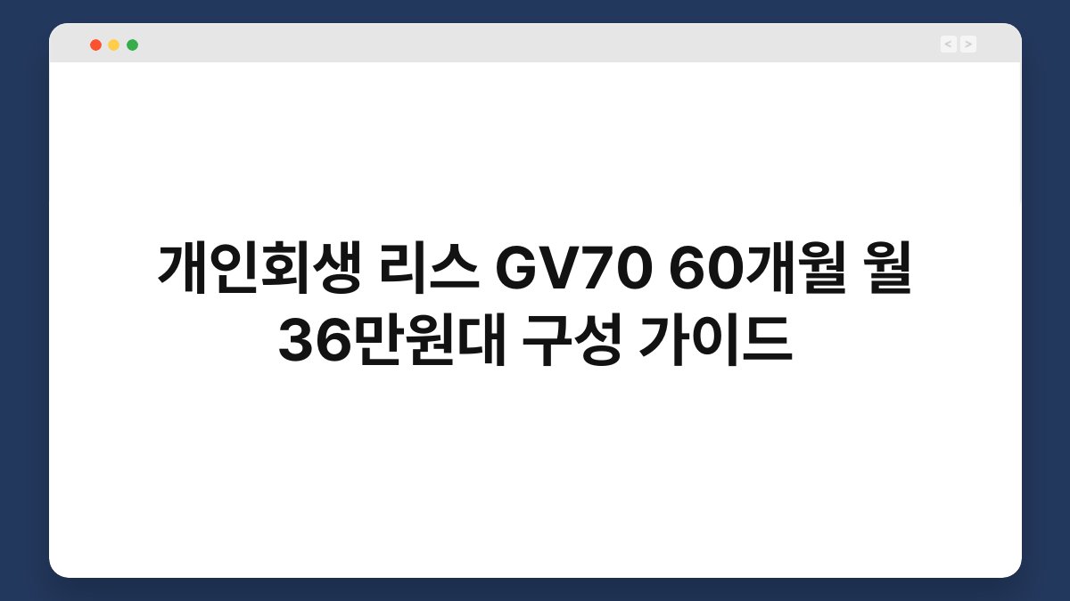리스는 차량을 소유하지 않고도 이용할 수 있는 방법으로, 초기 비용이 적고 월 납입금이 상대적으로 낮습니다. GV70을 60개월 동안 월 36만원대에 이용할 수 있다면, 부담이 덜할 것입니다. 이러한 조건은 개인회생자에게도 큰 도움이 됩니다.