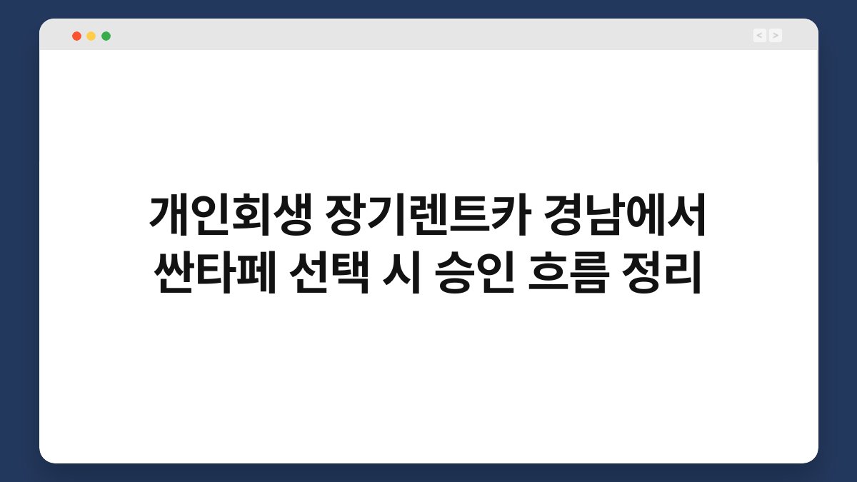 운전할 차를 찾고 계신가요? 경남에서 무심사 장기렌트카로 싼타페를 선택할 때의 승인 흐름을 정리해 보겠습니다. 이…