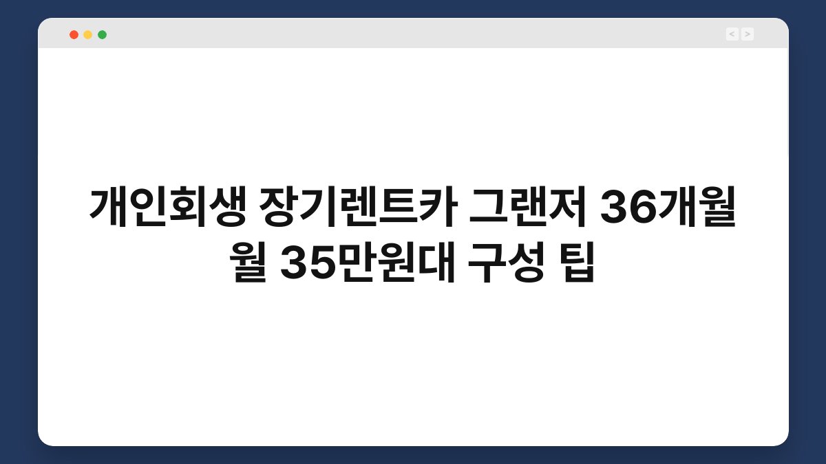 장기렌트카를 고려하고 계신가요? 특히 그랜저와 같은 고급 차종을 36개월 동안 월 35만원대에 이용할 수 있다면, 많은 분들이 관심을 가질 만한 내용입니다. 하지만 개인회생 중이라면 더욱 신중해야 하죠. 이 글에서는 장기렌트카 선택 시 유용한 팁과 함께, 황제오토플랜을 통해 어떻게 효율적으로 차량을 이용할 수 있는지에 대해 알아보겠습니다. 여러분의 재정 상황에 맞는 최적의 선택을 할 수 있도록 도와드릴게요.