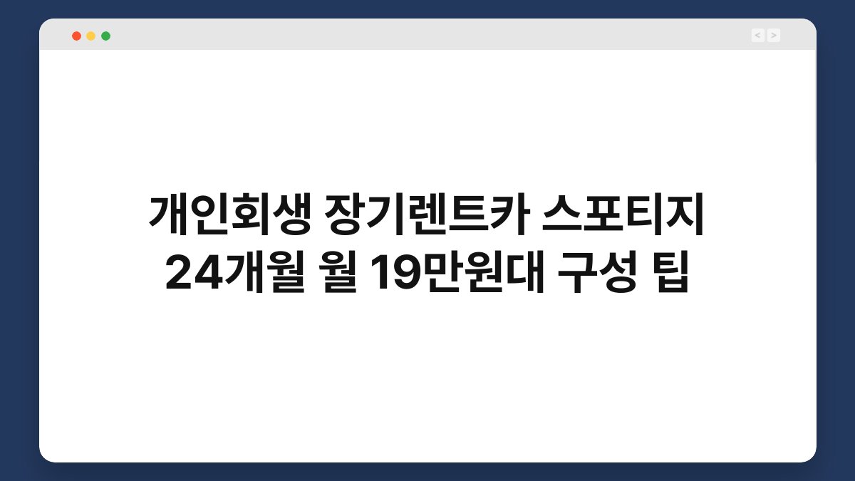 자동차를 소유하는 것이 부담스러울 때, 장기렌트카는 훌륭한 대안이 될 수 있습니다. 특히, 개인회생 중인 분들도 쉽게 접근할 수 있는 옵션이죠. 이번 글에서는 스포티지 모델을 중심으로 24개월 동안 월 19만원대에 장기렌트를 이용하는 팁을 소개하겠습니다. 황제오토플랜을 통해 저신용자도 부담 없이 자동차를 이용할 수 있는 방법을 알아보세요. 여러분의 자동차 이용이 더 편리해질 수 있습니다.