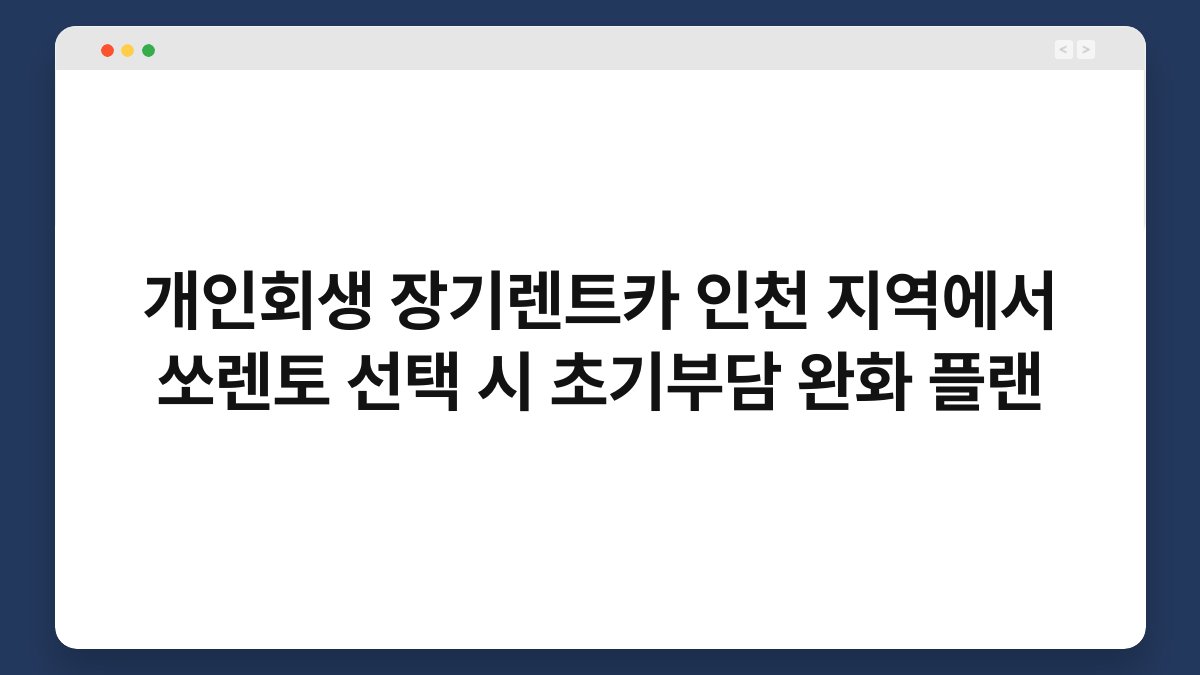 운전할 차를 선택하는 것은 쉽지 않은 일이죠. 특히 인천 지역에서 장기렌트카를 고려하고 계신다면, 초기 부담을 어떻게 완화할 수 있을지 고민이 많으실 겁니다. 쏘렌토 같은 인기 차량을 선택할 때, 황제오토플랜의 개인회생 장기렌트카 플랜이 큰 도움이 될 수 있습니다. 이 글에서는 초기 비용을 줄이는 방법과 함께 쏘렌토의 장점, 그리고 황제오토플랜을 통해 얻을 수 있는 혜택에 대해 알아보겠습니다. 끝까지 함께 해주세요!