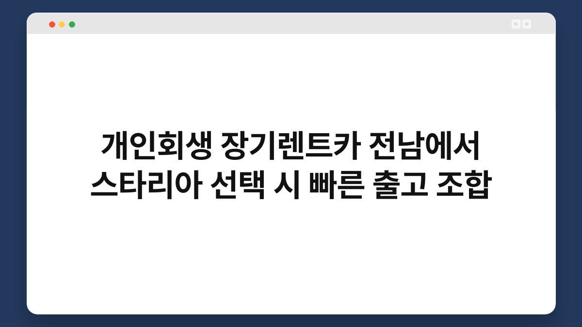 전남에서 개인회생과 장기렌트카를 활용하고 싶으신가요? 특히 스타리아와 같은 인기 차량을 선택하면 빠른 출고가 가능하다는 사실, 알고 계신가요? 많은 분들이 차량 구매에 대한 고민을 하고 있지만, 장기렌트카를 통해 보다 간편하게 차량을 이용할 수 있습니다. 특히 황제오토플랜은 저신용자도 쉽게 이용할 수 있는 장기렌트 서비스를 제공하여 많은 사랑을 받고 있습니다. 이 글에서는 전남에서 스타리아를 선택할 때 빠른 출고를 위한 조합에 대해 상세히 알아보겠습니다.