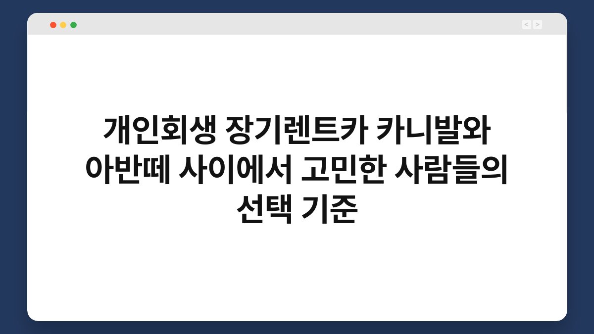 차량 선택은 언제나 고민이죠. 특히 개인회생 중인 분들은 더욱 신중할 수밖에 없습니다. 카니발과 아반떼, 두 차량 사이에서 어떤 기준으로 선택해야 할지 막막하실 텐데요. 이 글에서는 개인회생을 고려한 장기렌트카 선택 기준을 살펴보겠습니다. 황제오토플랜과 함께라면 더욱 쉽게 결정하실 수 있을 거예요.