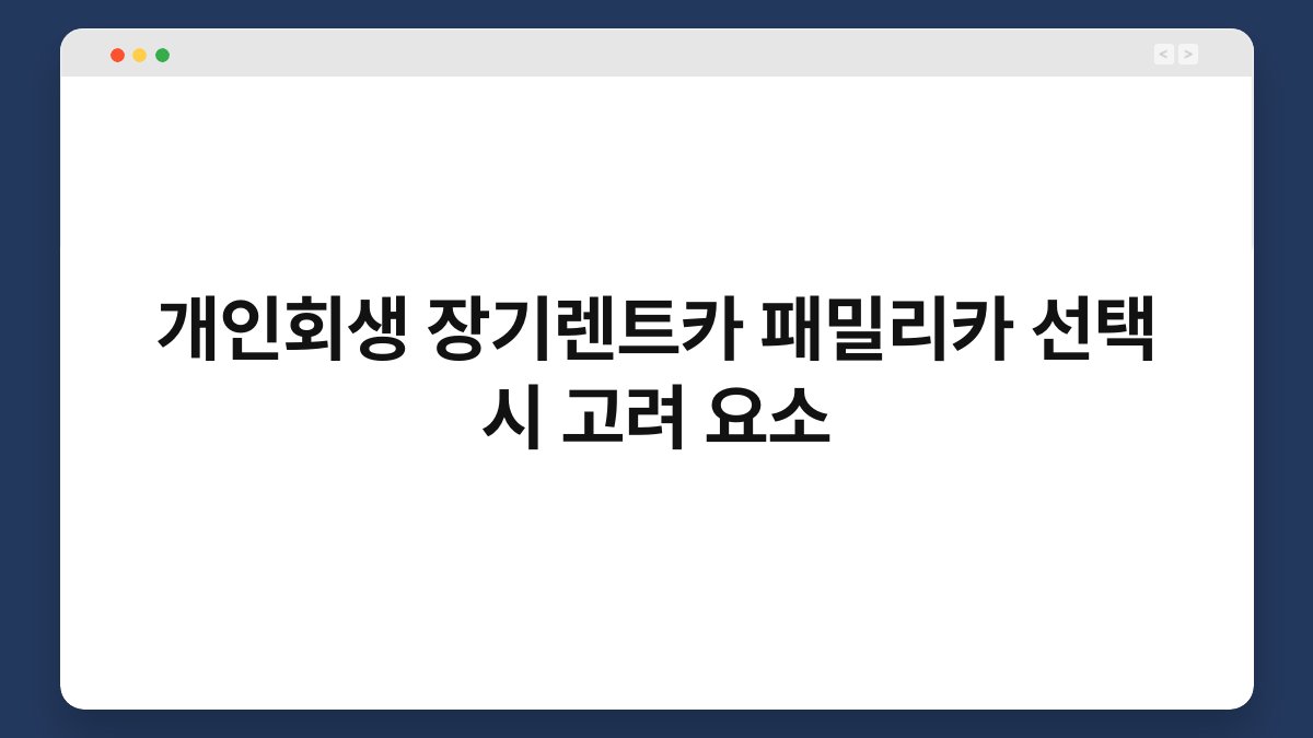 차량을 구입할 때, 개인회생으로 인해 경제적 부담이 큰 경우가 많습니다. 이럴 때 장기렌트카는 좋은 대안이 될 수 있습니다. 특히 패밀리카를 선택할 때는 여러 요소를 고려해야 하는데요, 이를 통해 가족의 안전과 편리함을 동시에 챙길 수 있습니다. 황제오토플랜과 함께라면, 이러한 선택이 더욱 수월해질 것입니다. 이제 어떤 요소를 고려해야 할지 자세히 살펴보겠습니다.
