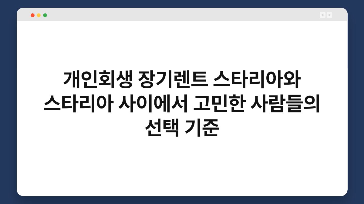 차량을 선택할 때, 많은 사람들이 고민하는 부분이 있습니다. 특히 개인회생 중인 분들이라면 더욱 신중해질 수밖에 없죠. 그렇다면 장기렌트와 스타리아, 두 가지 옵션 사이에서 어떤 기준으로 선택해야 할까요? 이 글에서는 고민하는 이들을 위해 필요한 정보를 제공하며, 황제오토플랜과 관련한 장기렌트의 유용성도 함께 살펴보겠습니다.