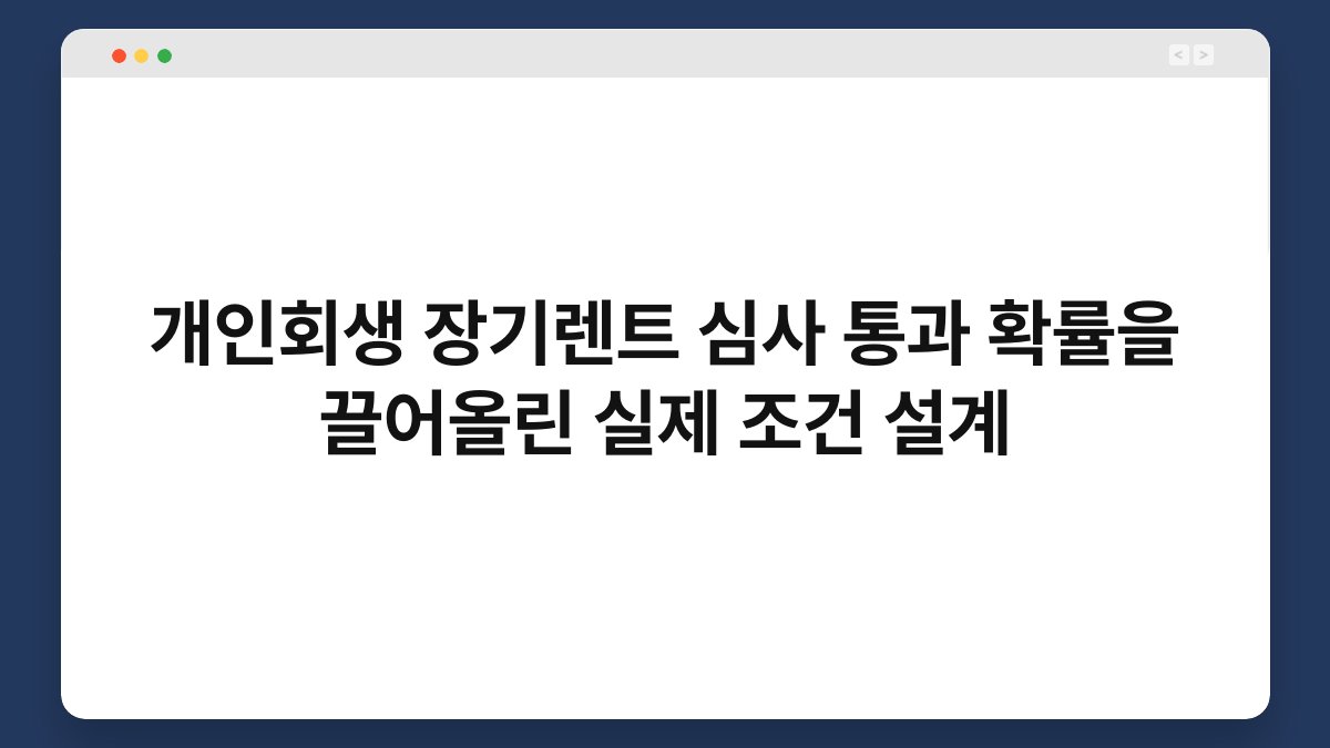 장기렌트, 개인회생 등 복잡한 금융 문제를 해결하려는 분들이 많습니다. 특히 개인회생 중에도 자동차를 필요로 하는 경우가 많죠. 이때, 장기렌트를 선택하는 방법이 주목받고 있습니다. 그러나 장기렌트를 신청할 때 심사 통과 확률이 낮은 경우가 많아 고민이 될 수 있습니다. 이 글에서는 심사 통과 확률을 높이는 실제 조건 설계에 대해 알아보겠습니다. 또한, 황제오토플랜을 통해 어떻게 유리한 조건을 설계할 수 있는지도 함께 살펴보겠습니다.