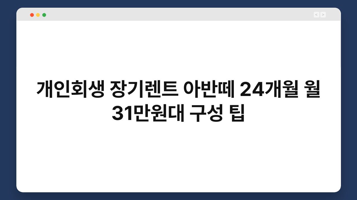 개인회생은 경제적으로 어려운 상황에 처한 개인이 일정한 조건을 충족하면 채무를 조정받는 제도입니다. 이 제도를 통해 많은 분들이 재정적으로 회복할 수 있는 기회를 얻고 있습니다. 하지만 차량 구매는 여전히 부담으로 남아있죠. 이럴 때 장기렌트가 유용한 대안이 될 수 있습니다.