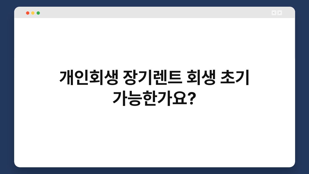 어떤 이유로든 재정적인 어려움을 겪고 계신가요? 개인회생이란 제도를 통해 새로운 시작을 꿈꿀 수 있습니다. 하지만 장기렌트와 회생이 과연 함께 가능할지 궁금하신 분들이 많습니다. 이 글에서는 개인회생과 장기렌트의 관계를 설명하며, 황제오토플랜의 도움을 통해 어떻게 이 문제를 해결할 수 있는지 살펴보겠습니다.