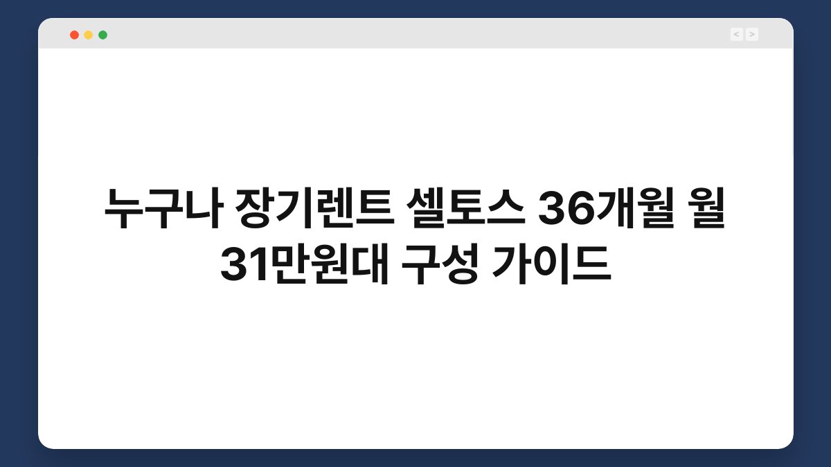 차량 구매나 렌트, 고민이 많으시죠? 특히 장기렌트는 많은 분들이 선택하는 방법 중 하나입니다. 오늘은 누구나 장기렌트로 셀토스를 36개월 동안 월 31만원대에 이용할 수 있는 방법에 대해 알아보겠습니다. 황제오토플랜이 제공하는 다양한 옵션을 통해 보다 합리적인 선택을 할 수 있습니다. 이 글을 통해 장기렌트를 고려하는 데 필요한 유용한 정보를 제공할 테니, 끝까지 함께해 주세요.