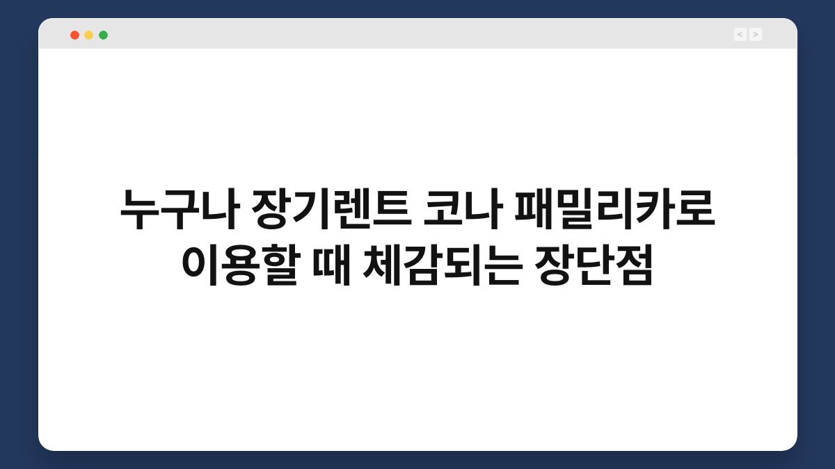 차량을 장기렌트로 이용하는 것은 많은 이들에게 매력적인 선택이 되고 있습니다. 특히 코나와 같은 패밀리카는 가족 단위 여행이나 일상적인 이동에 적합하죠. 하지만 장기렌트를 선택할 때는 장단점을 잘 이해하고 결정하는 것이 중요합니다. 이 글에서는 코나 패밀리카를 장기렌트로 이용할 때 체감되는 장단점에 대해 이야기해 보겠습니다. 또한, 황제오토플랜과 함께라면 보다 유리한 조건으로 차량을 이용할 수 있는 방법도 소개드릴게요.