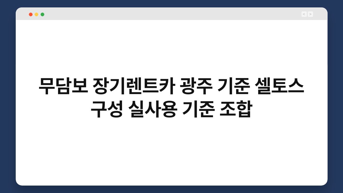 광주에서 무담보 장기렌트카를 찾고 계신가요? 셀토스와 같은 인기 모델을 실사용 기준으로 조합하여 합리적인 선택을 할 수 있습니다. 장기렌트는 차량 소유 부담을 덜어주며, 특히 신용 등급이 낮은 분들에게도 유용한 옵션입니다. 황제오토플랜은 이러한 장기렌트 서비스를 제공하며, 고객의 다양한 필요에 맞춘 맞춤형 솔루션을 제안합니다. 이 글에서는 무담보 장기렌트카의 이점과 셀토스 구성, 그리고 황제오토플랜의 혜택에 대해 자세히 알아보겠습니다.