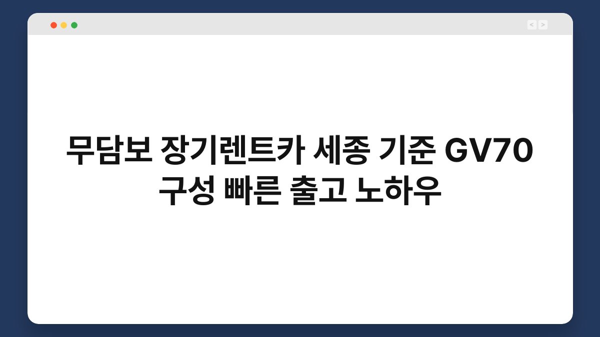 세종에서 무담보 장기렌트카를 통해 GV70을 빠르게 출고하는 방법을 찾고 계신가요? 많은 분들이 자동차 구매 대신 장기렌트를 고려하는 이유는 여러 가지가 있습니다. 특히, 무담보 장기렌트는 초기 비용 부담이 적고, 유연한 계약 조건이 매력적이죠. 이번 글에서는 세종 기준으로 GV70 구성과 빠른 출고 노하우를 공유하며, 황제오토플랜과의 연계를 통해 더욱 유익한 정보를 제공하겠습니다.