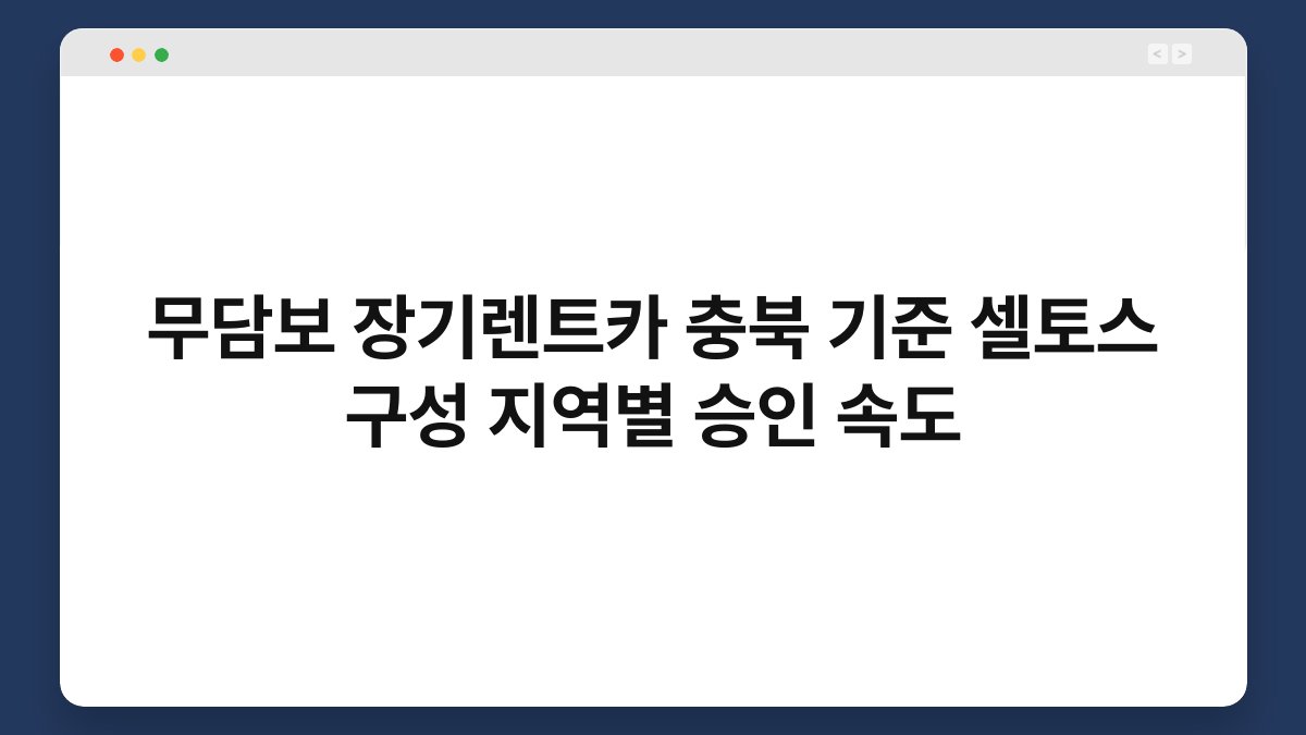 장기렌트카를 고려하고 계신가요? 특히 무담보 장기렌트카를 통해 셀토스를 이용하고자 하신다면, 충북 지역의 승인 속도에 대해 알아보는 것이 중요합니다. 많은 분들이 저신용으로 인해 어려움을 겪고 있지만, 황제오토플랜에서는 보다 간편하게 차량을 이용할 수 있는 방법을 제시합니다. 이 글에서는 무담보 장기렌트카의 장점과 충북 지역에서의 셀토스 승인 속도에 대해 자세히 설명드리겠습니다.