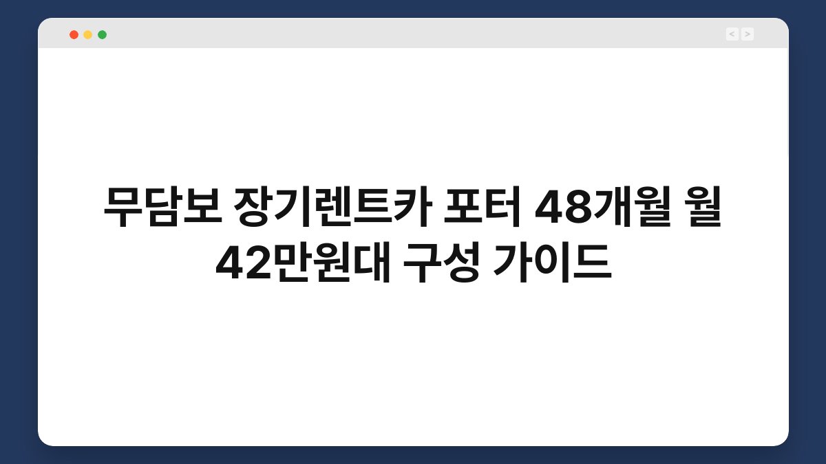차량 구입을 고민하고 계신가요? 특히 무담보 장기렌트카를 통해 경제적으로 차량을 이용하고 싶다면, 포터를 48개월 동안 월 42만원대에 이용할 수 있는 방법을 소개합니다. 황제오토플랜에서는 이러한 조건을 충족하는 다양한 옵션을 제공하고 있습니다. 이 글에서는 무담보 장기렌트카의 장점과 포터의 특징을 통해 여러분의 선택을 도와드리겠습니다. 함께 알아보시죠!