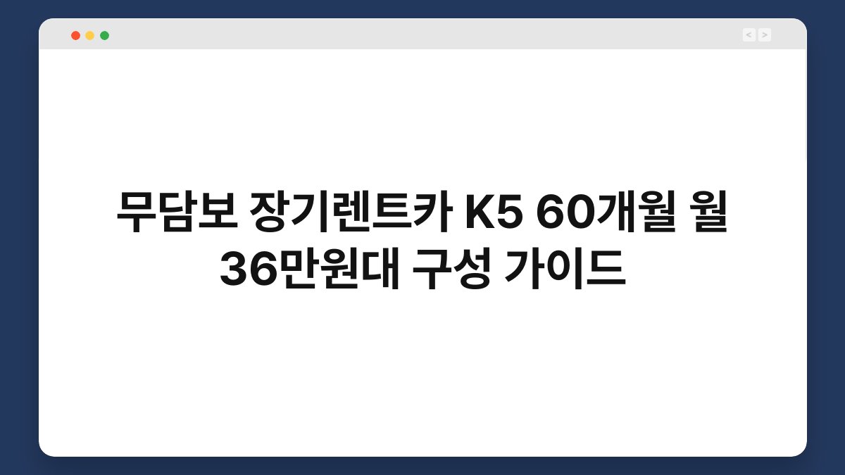 장기렌트카, 특히 무담보 장기렌트카는 요즘 많은 사람들에게 큰 관심을 받고 있습니다. 특히 K5 모델을 60개월 동안 월 36만원대에 이용할 수 있다면 더욱 매력적이지 않을까요? 이 글에서는 무담보 장기렌트카의 장점과 황제오토플랜을 통해 어떻게 이 혜택을 누릴 수 있는지에 대해 자세히 알아보겠습니다. 여러분이 차량을 소유하는 대신 렌트로 더 유연한 선택을 할 수 있도록 도와드릴게요. 자, 그럼 바로 시작해볼까요?