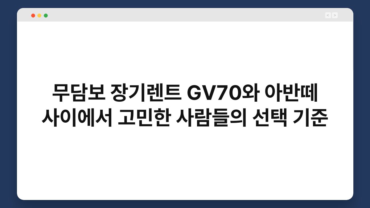 차량 선택은 언제나 고민이 많습니다. 특히 무담보 장기렌트에서 GV70과 아반떼 사이에서 고민하는 분들이 많죠. 두 차량은 각각의 매력과 특성을 가지고 있어 선택이 쉽지 않습니다. 이 글에서는 GV70과 아반떼의 장단점을 비교하고, 선택 기준에 대해 알아보겠습니다. 또한, 황제오토플랜을 통해 장기렌트를 진행하는 방법도 소개하니 끝까지 함께해 주세요.