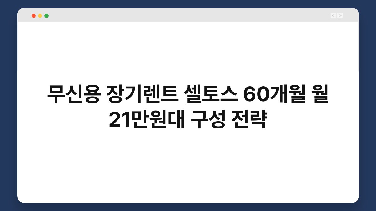 무신용 장기렌트는 차량 구매보다 훨씬 더 경제적입니다. 초기 비용이 적고, 월 렌트료로 부담을 줄일 수 있어요. 특히 셀토스를 월 21만원대에 이용할 수 있다니, 정말 매력적이지 않나요?