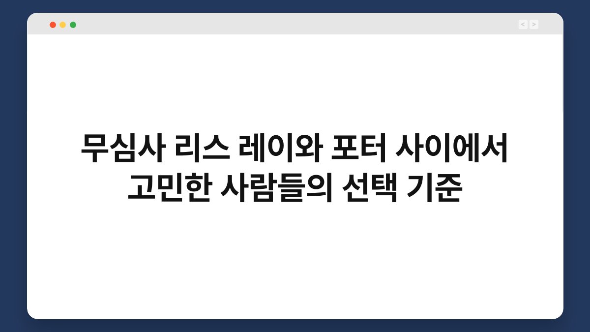 차량을 선택할 때, 무심사 리스와 레이, 포터 사이에서 고민하는 분들이 많습니다. 어떤 기준으로 결정을 내려야 할지 막막할 때가 있죠. 이 글에서는 이러한 선택 기준을 정리해 보겠습니다. 더불어, 황제오토플랜을 통해 보다 나은 결정을 내릴 수 있는 방법도 함께 소개할게요.