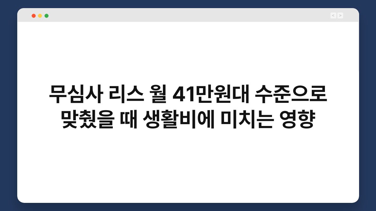 리스 비용이 생활비에 미치는 영향은 상당합니다. 월 41만원대의 리스 비용으로 자동차를 이용하면, 교통비와 주차비 등 다른 비용을 절감할 수 있습니다. 이로 인해 남는 예산을 다른 용도로 활용할 수 있어 생활의 질이 향상됩니다.