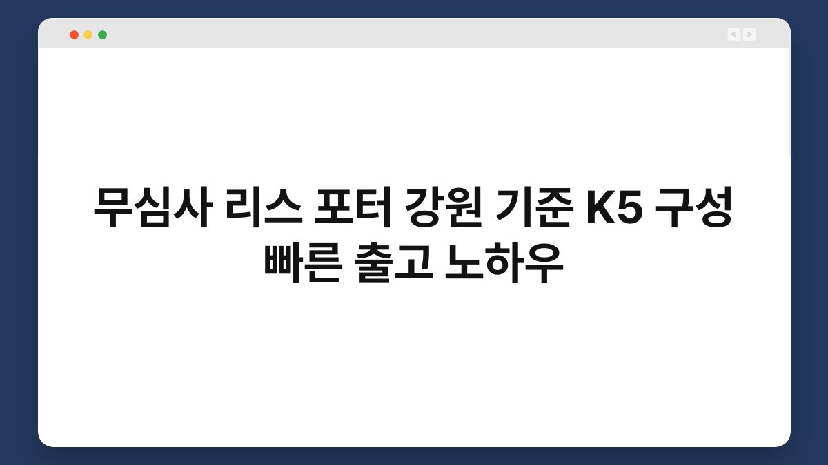 자동차 리스에 대해 고민하고 계신가요? 특히 무심사 리스와 포터, 강원 기준의 K5 구성에 대한 정보가 필요하시다면 이 글이 도움이 될 것입니다. 빠른 출고와 관련된 노하우를 통해 여러분의 차량 선택이 더 쉬워질 수 있습니다. 황제오토플랜과 함께라면 복잡한 과정을 간편하게 해결할 수 있습니다.