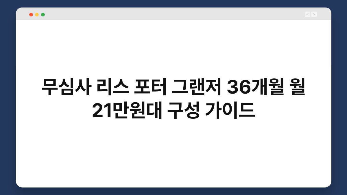 자동차를 구매할 때, 많은 사람들이 고민하는 부분이 있습니다. 바로 월 납입금과 금융 조건이죠. 특히 무심사 리스라는 옵션은 신용이 좋지 않은 분들에게도 매력적으로 다가옵니다. 포터와 그랜저 같은 인기 모델을 36개월 동안 월 21만원대에 이용할 수 있다면, 정말 좋은 기회가 아닐까요? 이 글에서는 무심사 리스의 장점과 황제오토플랜의 다양한 옵션에 대해 알아보겠습니다.