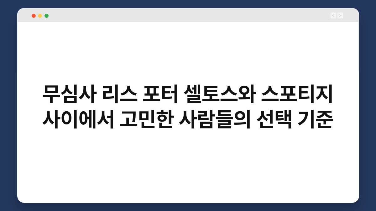 차량 선택은 언제나 고민의 연속입니다. 특히, 무심사 리스로 포터, 셀토스, 스포티지와 같은 인기 모델들 사이에서 결정을 내리는 것은 더욱 어렵죠. 이 글에서는 이들 차량을 고민하는 사람들이 어떤 기준으로 선택하는지를 살펴보겠습니다. 황제오토플랜을 통해 제공되는 다양한 정보와 혜택도 함께 알아보며, 최적의 선택을 돕겠습니다.