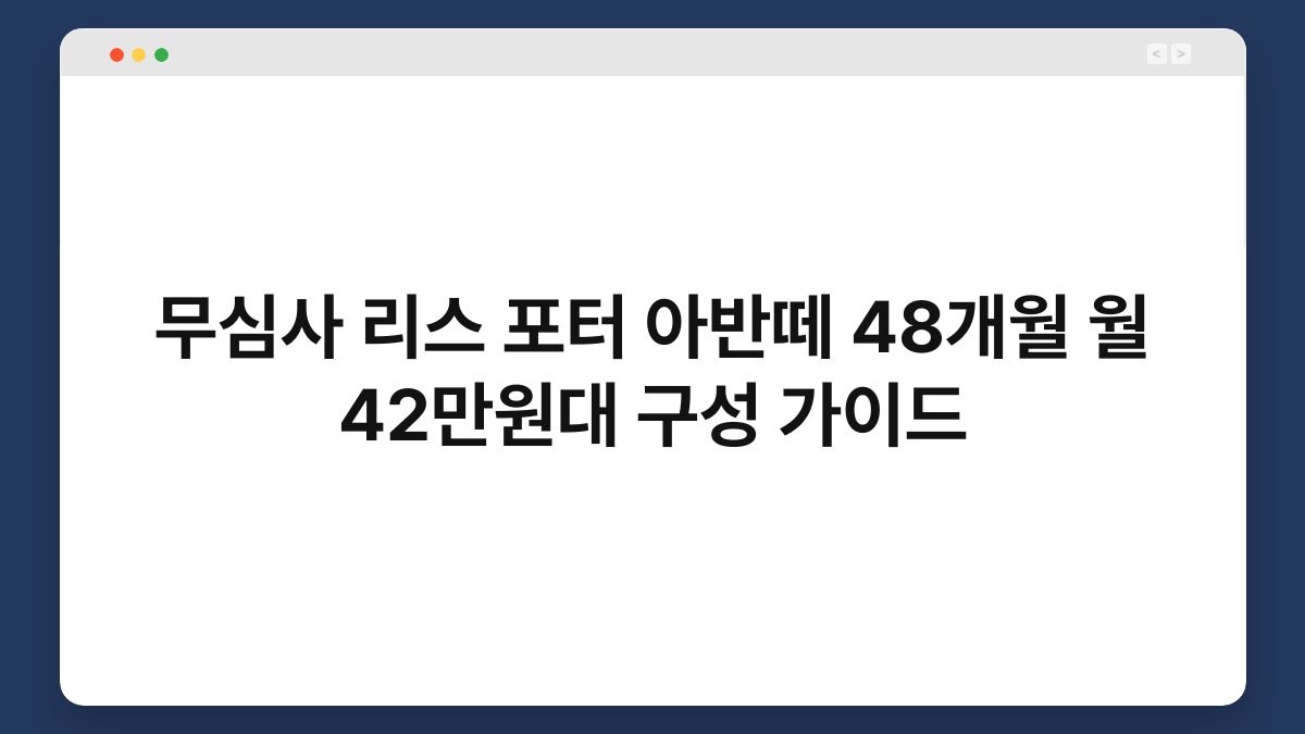 차량을 소유하는 것은 많은 사람들에게 꿈과 같은 일입니다. 하지만 초기 비용과 유지비용 때문에 고민이 많으시죠? 그렇다면 무심사 리스를 통해 아반떼를 48개월 동안 월 42만원대에 이용할 수 있는 방법을 알아보세요. 황제오토플랜에서는 이러한 조건을 만족하는 다양한 옵션을 제공하고 있습니다. 이 글에서는 무심사 리스의 장점과 아반떼의 매력을 함께 살펴보겠습니다.