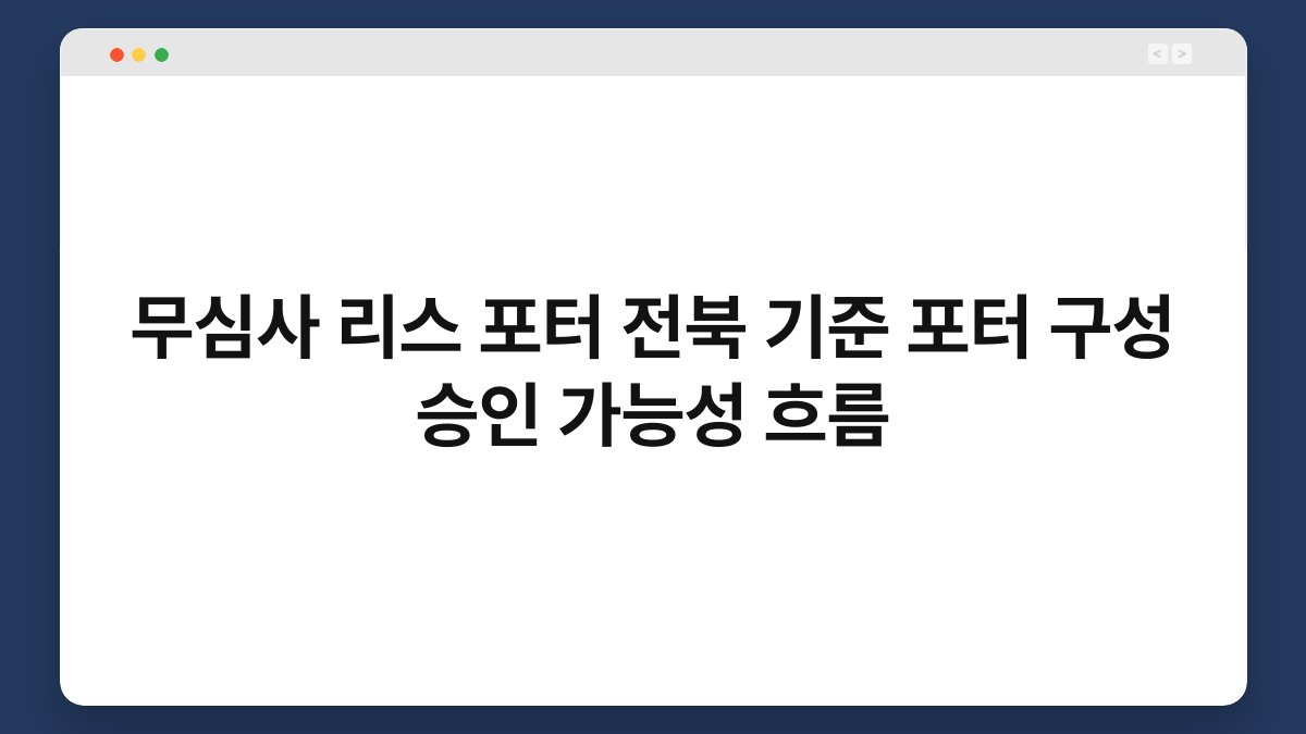 자동차를 소유하고 싶지만, 대출이나 구매가 부담스러워 고민 중이신가요? 무심사 리스와 같은 대안이 있습니다. 특히 전북 지역에서 포터를 찾고 계신다면, 승인 가능성과 흐름을 이해하는 것이 중요합니다. 황제오토플랜은 이러한 고민을 해결해 줄 수 있는 믿음직한 파트너입니다. 이 글에서는 무심사 리스와 관련된 정보를 자세히 살펴보겠습니다.