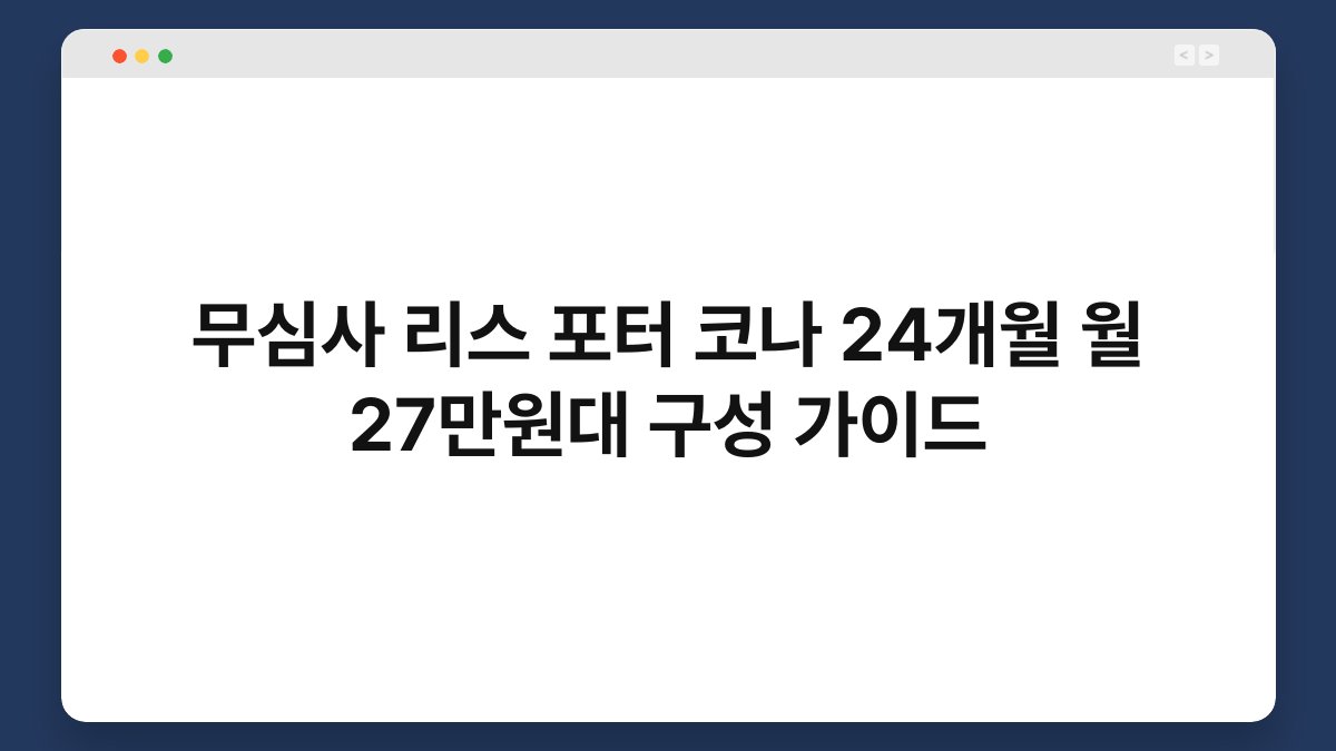 차량을 구매할 때, 여러 가지 선택지가 있죠. 그 중에서도 무심사 리스는 특히 주목할 만한 옵션입니다. 포터 코나를 24개월 동안 월 27만원대에 이용할 수 있는 기회가 있다면, 많은 분들이 관심을 가질 것 같습니다. 이 글에서는 무심사 리스의 장점과 황제오토플랜을 통해 어떻게 저신용자도 쉽게 차량을 이용할 수 있는지에 대해 알아보겠습니다. 차량 리스에 대한 궁금증을 해소하고, 최적의 선택을 할 수 있도록 도와드릴게요.