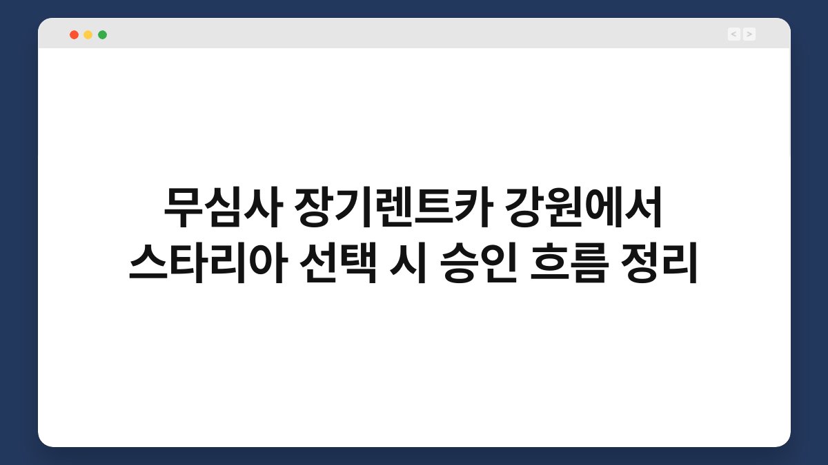강원에서 스타리아를 선택하고 무심사 장기렌트카를 이용할 때, 승인 흐름이 어떻게 진행되는지 궁금하시죠? 많은 분들이 장기렌트를 고려할 때, 복잡한 절차나 신용 문제로 고민하게 됩니다. 하지만 걱정하지 마세요. 황제오토플랜과 함께라면 간편하고 빠르게 차량을 이용할 수 있습니다. 이 글에서는 승인 흐름을 정리하고, 스타리아의 매력도 함께 살펴보겠습니다.