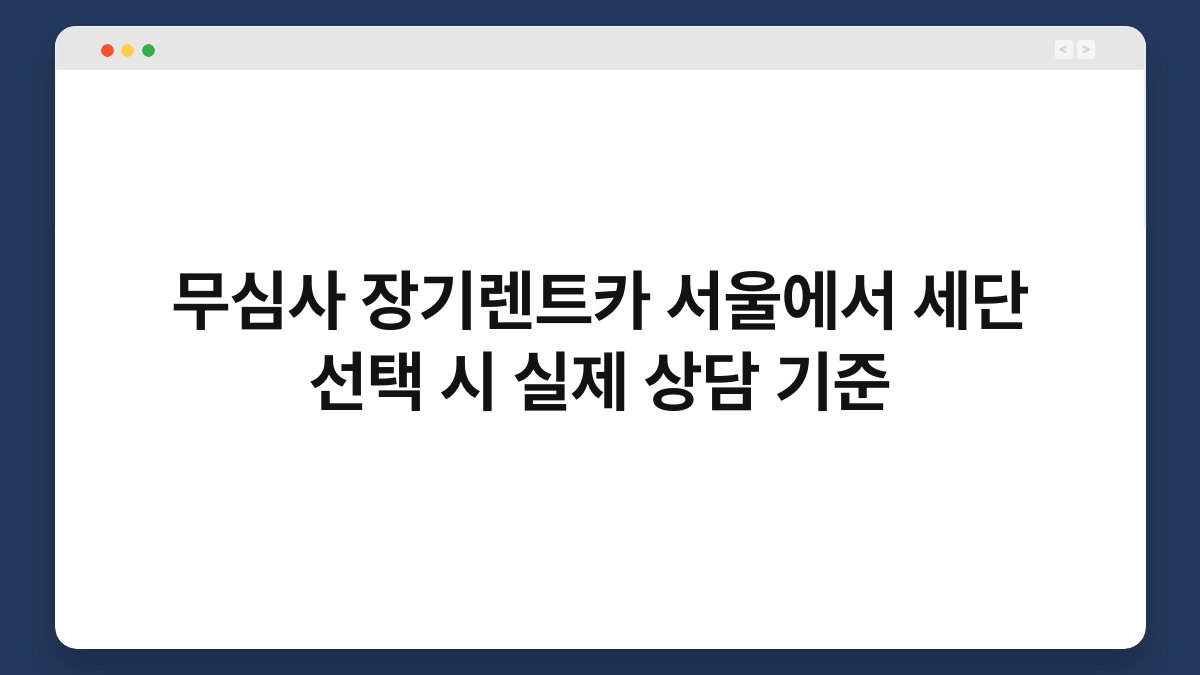 서울에서 무심사 장기렌트카를 선택할 때, 세단을 고려하는 분들이 많습니다. 하지만 어떤 기준으로 상담을 받아야 할지 막막할 수 있죠. 이 글에서는 실제 상담 시 유용한 정보를 제공하며, 황제오토플랜과의 연계로 더욱 신뢰할 수 있는 선택을 도와드리겠습니다. 세단의 장점과 선택 기준, 그리고 황제오토플랜의 특별한 서비스까지 알아보세요. 여러분의 차량 선택이 한층 쉬워질 것입니다.