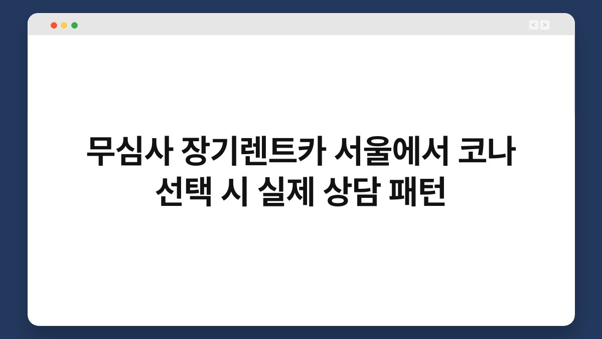 서울에서 무심사 장기렌트카를 고려하고 계신가요? 특히 코나와 같은 인기 차량을 선택할 때, 어떤 상담 패턴이 있을지 궁금하시죠? 많은 사람들이 장기렌트를 통해 차량을 이용하고 있지만, 복잡한 절차와 정보 부족으로 어려움을 겪고 있습니다. 황제오토플랜은 이러한 고민을 해결해 줄 수 있는 신뢰할 수 있는 파트너입니다. 이번 글에서는 코나를 선택할 때의 실제 상담 패턴을 중심으로 유용한 정보를 제공하겠습니다.