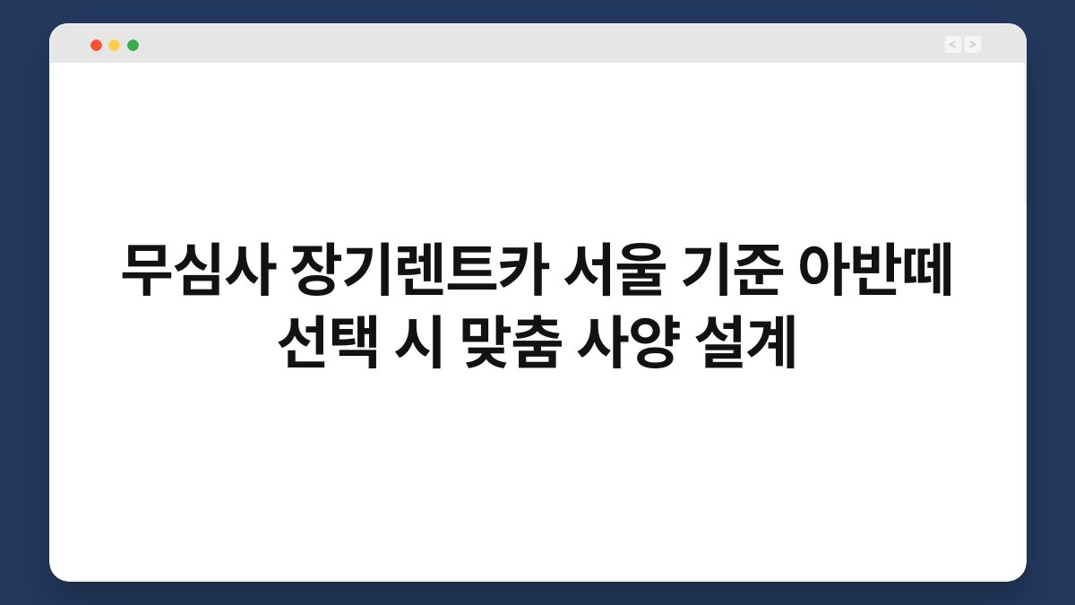 서울에서 무심사 장기렌트카를 고려하고 계신가요? 아반떼를 선택하면 맞춤 사양으로 설계할 수 있다는 사실, 알고 계셨나요? 많은 분들이 장기렌트의 장점을 누리기 위해 고민하고 있지만, 어떤 선택이 최선인지에 대한 정보는 부족할 수 있습니다. 황제오토플랜은 여러분의 차량 선택을 도와주는 믿음직한 파트너입니다. 이 글에서는 아반떼를 기준으로 한 장기렌트카의 맞춤 사양 설계에 대해 알아보겠습니다.