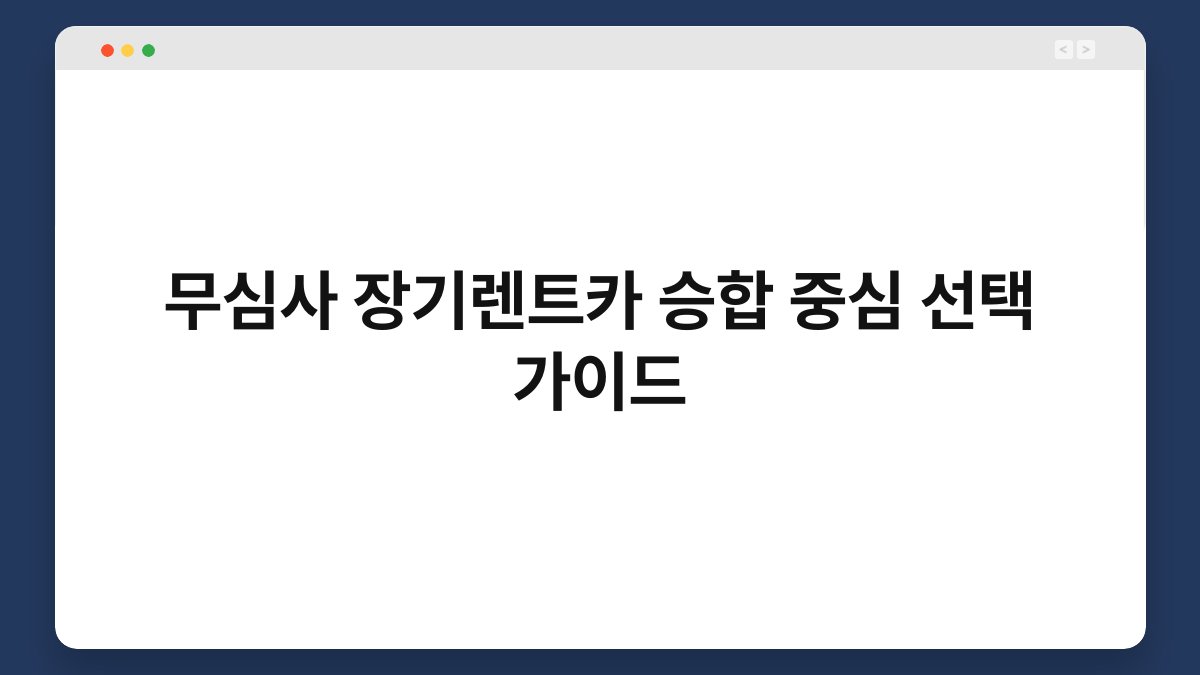 장기렌트카를 선택할 때, 무심사 옵션이 여러분의 선택지를 넓혀줄 수 있다는 사실, 알고 계셨나요? 특히 승합차를 이용하고자 하는 분들에게는 더욱 유용할 수 있습니다. 이 글에서는 무심사 장기렌트카의 장점과 함께 승합차를 선택할 때 고려해야 할 요소들을 안내해 드리겠습니다. 또한, 황제오토플랜의 다양한 서비스와 함께 이 선택이 여러분에게 어떻게 도움이 될 수 있는지 살펴보겠습니다.