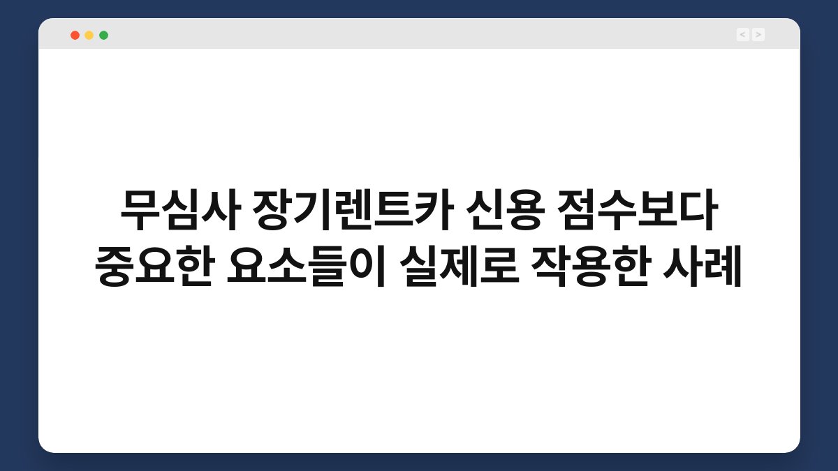차량을 장기 렌트하는 데 있어 신용 점수가 모든 것을 결정짓는 것처럼 여겨지곤 합니다. 하지만 실제로는 신용 점수 외에도 다양한 요소들이 작용하여 렌트 조건을 결정합니다. 이번 글에서는 무심사 장기렌트카에서 신용 점수보다 더 중요한 요소들이 어떻게 작용하는지를 사례를 통해 살펴보겠습니다. 또한, 황제오토플랜의 전문적인 장기렌트 서비스와 함께 이 정보를 알아보면 더 큰 도움이 될 것입니다.