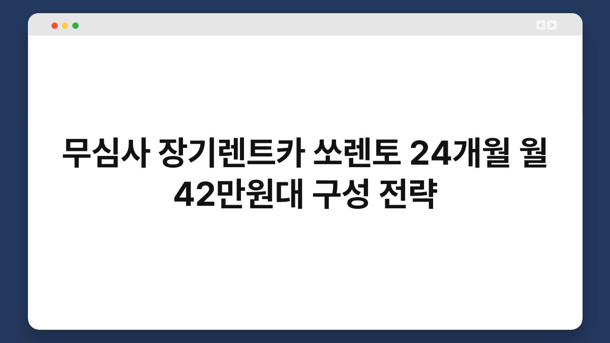 차량 구매를 고민하는 분들에게 장기렌트카는 매력적인 대안이 될 수 있습니다. 특히 무심사 장기렌트카 쏘렌토는 24개월 동안 월 42만원대의 합리적인 비용으로 제공되어 많은 관심을 받고 있습니다. 이 글에서는 이러한 장기렌트의 장점과 황제오토플랜의 다양한 옵션에 대해 자세히 알아보겠습니다. 차량을 소유하는 부담 없이 편리하게 이용할 수 있는 방법을 소개해드릴 테니 끝까지 함께해 주세요.