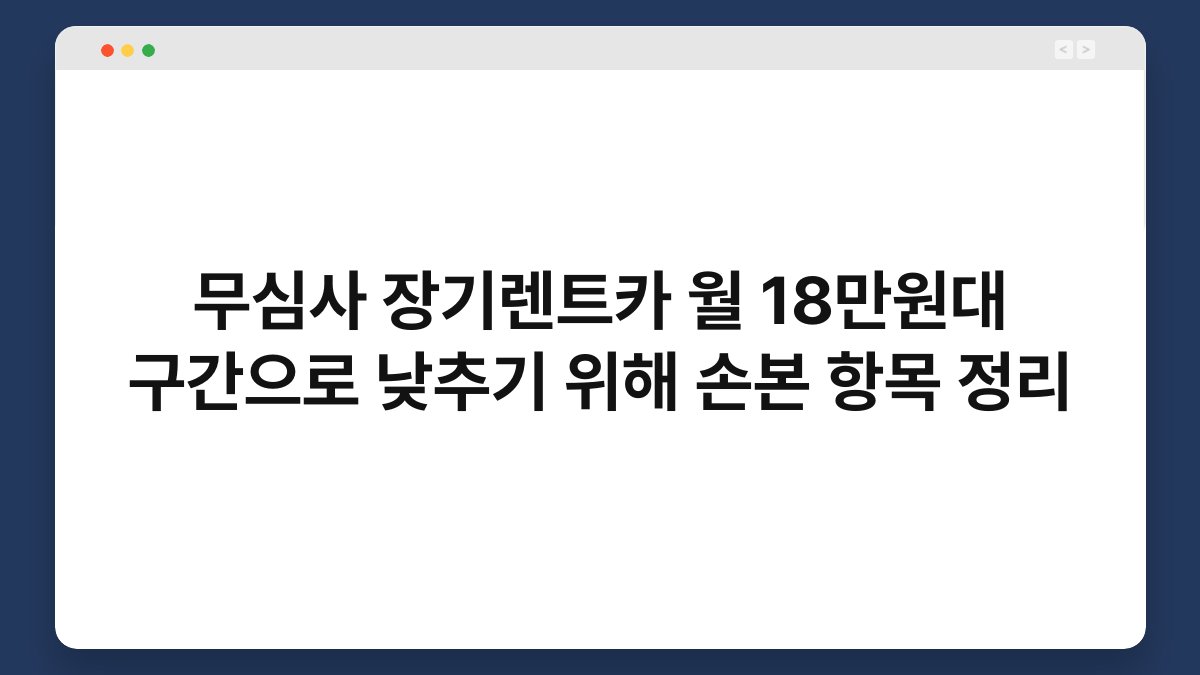 ✅ 무심사 장기렌트카를 월 18만원대 구간으로 낮추는 방법