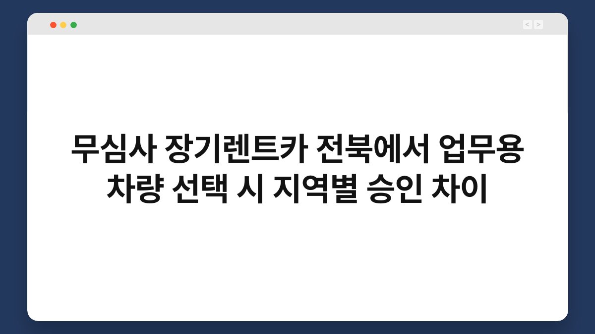 전북에서 업무용 차량을 선택할 때, 무심사 장기렌트카의 승인 절차가 지역별로 다를 수 있다는 사실, 알고 계셨나요? 각 지역마다 대출 심사 기준과 조건이 상이하기 때문에, 차량 렌트 시 승인 속도와 조건이 달라질 수 있습니다. 특히, 황제오토플랜을 통해 무심사 장기렌트카를 이용하면 더 유리한 조건으로 차량을 확보할 수 있는 기회가 많습니다. 이 글에서는 전북 지역에서의 업무용 차량 선택 시 승인 차이에 대해 자세히 알아보겠습니다.